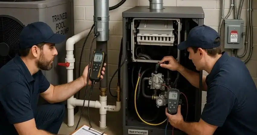 Pool heater repair problems in Franklin, East Gwillimbury? HVAC East Gwillimbury finds the cause, replaces igniters, sensors, gas valves, control boards, and heat exchangers, clears scale, and confirms operation so the water warms up without unnecessary upsells.